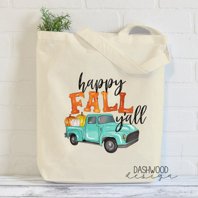 Happy Fall Y'all Turquiose Truck Sublimated Tote
